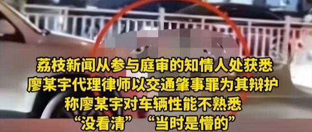 包括对此一家三口的撞击,律师还为廖某某辩称,表示廖某某“没看清”、“当时是懵的”。
