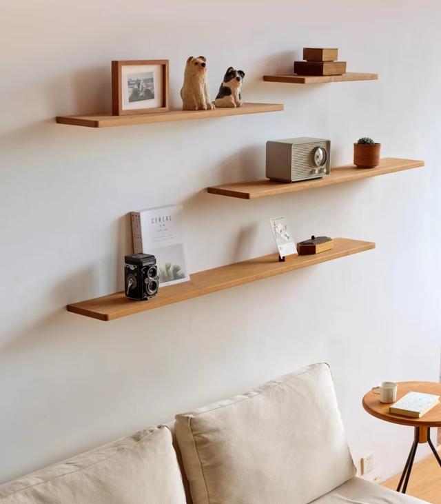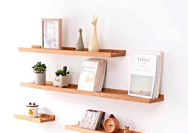 第二款为:一字型悬浮实木隔板,实木材料更加环保,适合各种家居风格。