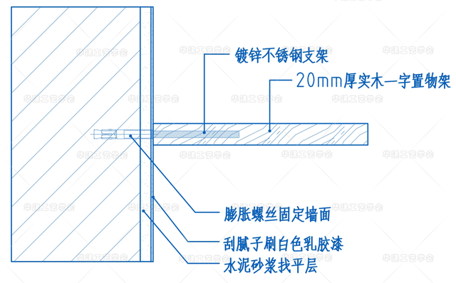 △一字型悬浮实木隔板施工图(膨胀螺丝固定)