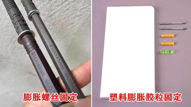 2、把膨胀螺丝套插进孔里,再用螺丝把灯条板固定到墙上;