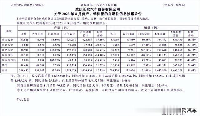 自主品牌新能源销量方面,8月,长安汽车自主品牌新能源销量为40122辆,同比增加123.55%;1-8月,累计销量255692辆,同比增加102.44%。