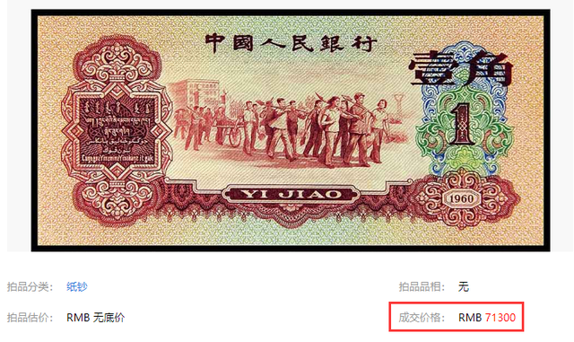 也正因为“发行时间短+大规模回收”,枣红1角成为极为稀有的币种。目前市场上,一张全新未流通的枣红1角纸币,价格通常在2~3万元之间;若为评级高分、印刷清晰、品相极佳者,拍卖成交价可突破5万元大关。