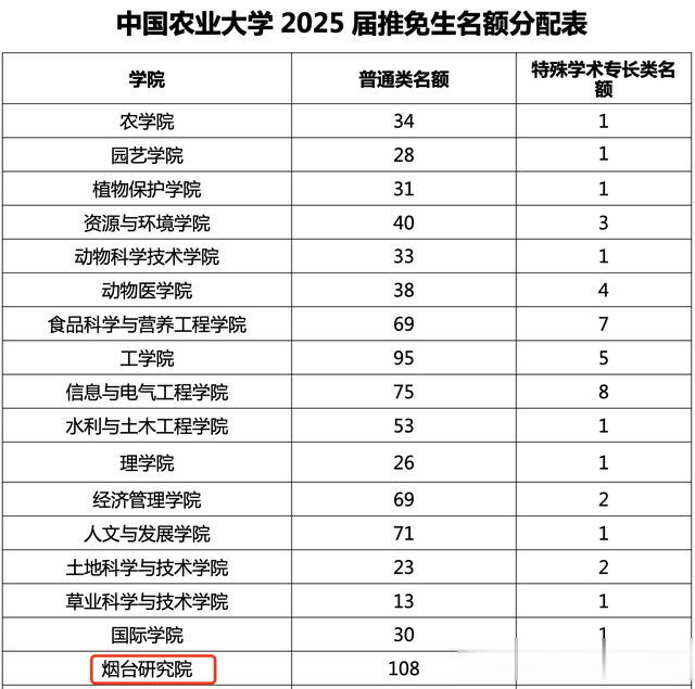 官网已经公布2025年各院系的推免人数,如下图所示,2025年烟台研究院的推免人数为108人。