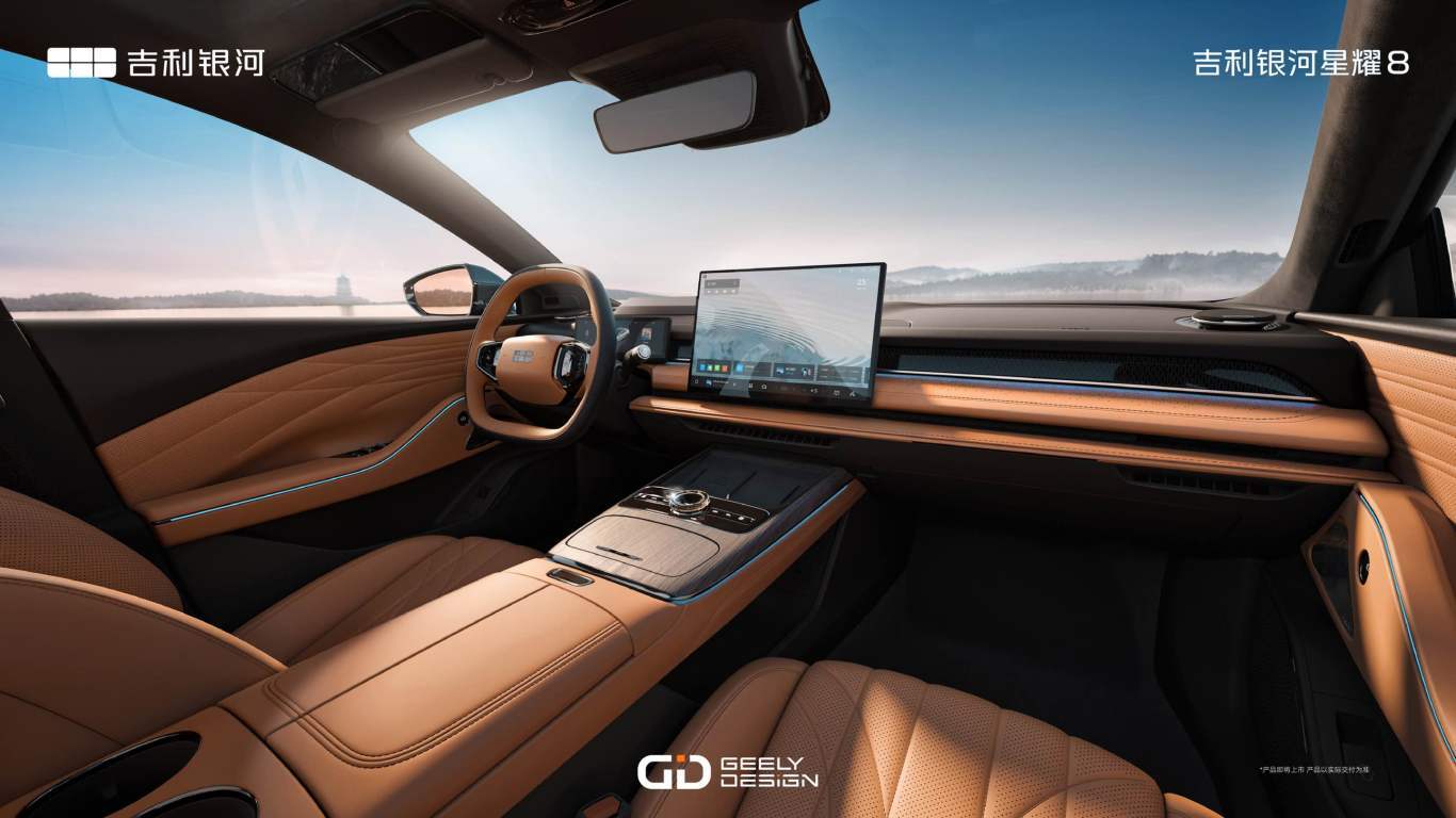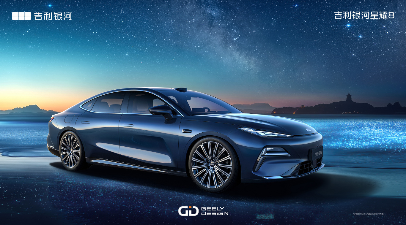 吉利银河星耀8以吉利银河品牌的“涟漪美学”为核心设计元素。“飞檐虎视”前大灯、“润玉流光”侧车身、“旭日东升”尾灯等大开大阖的中式风格细节设计,在无框车窗、隐藏式门把手、19英寸耀影多辐轮毂等现代科技与工艺的映衬下,呈现中国传统文化精髓与现代科技元素深度融合的中式意境。车身提供霁海蓝、山河翠、天既白、国墨灰、点螺银、建盏黑六款车色,色彩灵感来源于中国传统器物或文化,呈现原生的中式豪华风范。