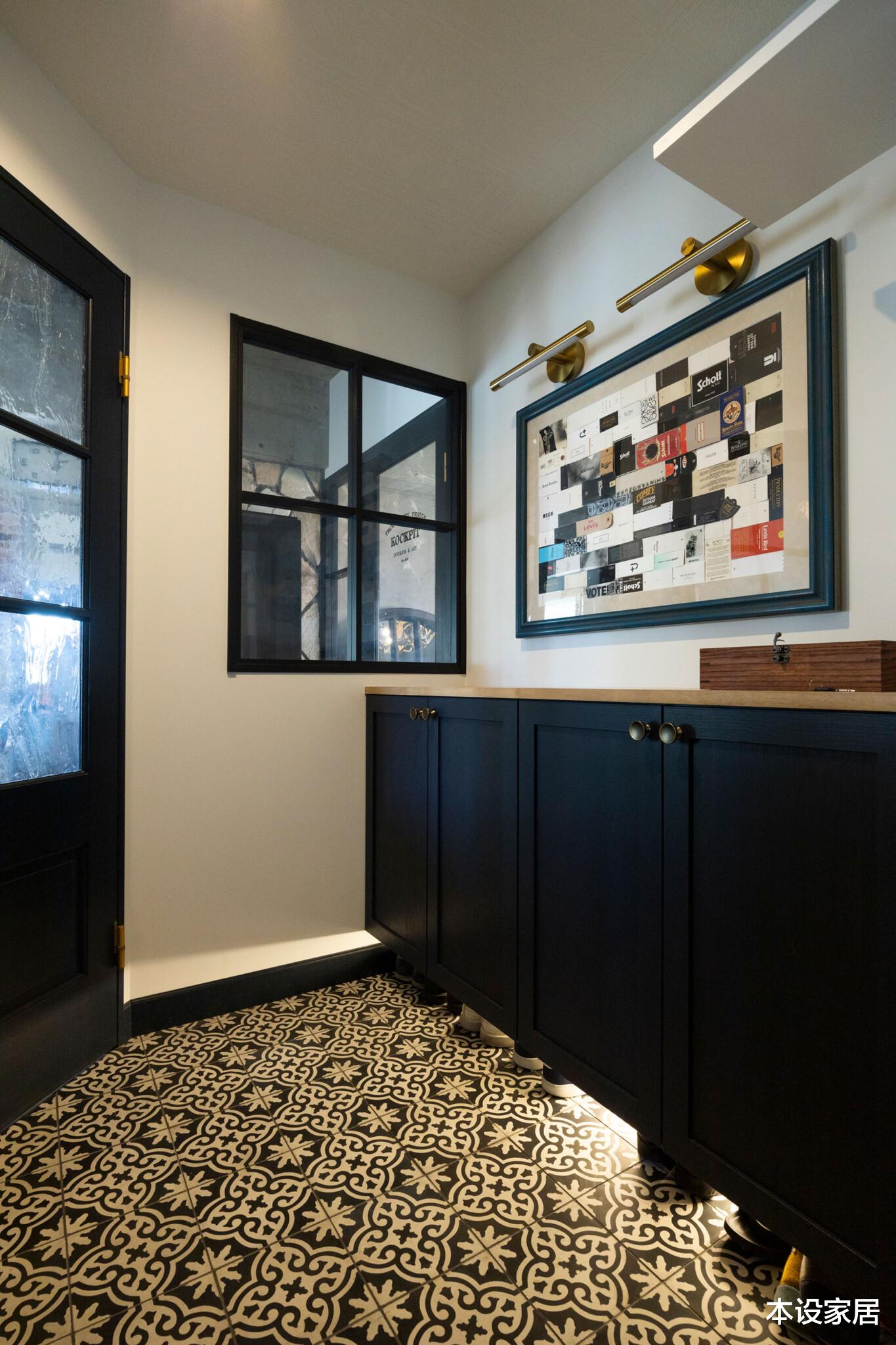 玄关地面铺设咖色花砖,墙面和天花大面积刷白,入户第一眼就心动了!