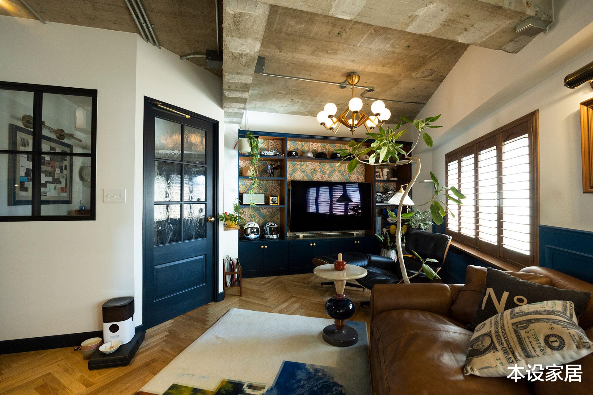但小哥有自己的打算,上图就是改造后客厅的视觉效果,混凝土屋顶裸露在外,没有一丝一毫的奢华感,但细看全屋后,你会发现超有格调,不得不佩服他超棒的品位。