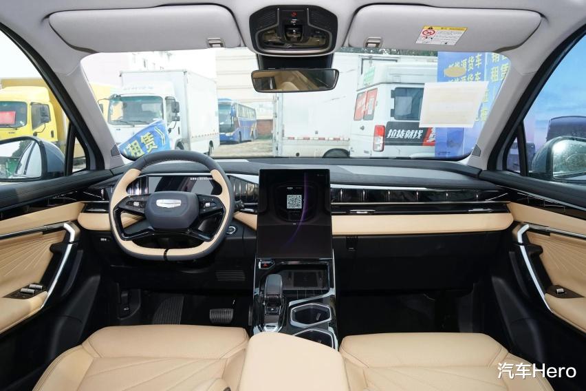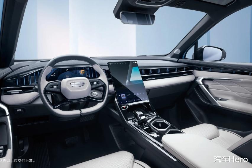内饰方面,这款车的内饰布局比较凸显科技感,车内采用了均多软性皮质进行包裹,并应用了较多的缝线纹理,搭配造型运动的多功能方向盘,体现了一些运动感。车内还配备了10.25英寸的全液晶仪表和13.2英寸的竖置中控屏,并内置了高通骁龙8155芯片和吉利银河OS Air版车机系统,支持的功能也比较丰富,且在近期对车机系统进行了升级,优化了很多功能。