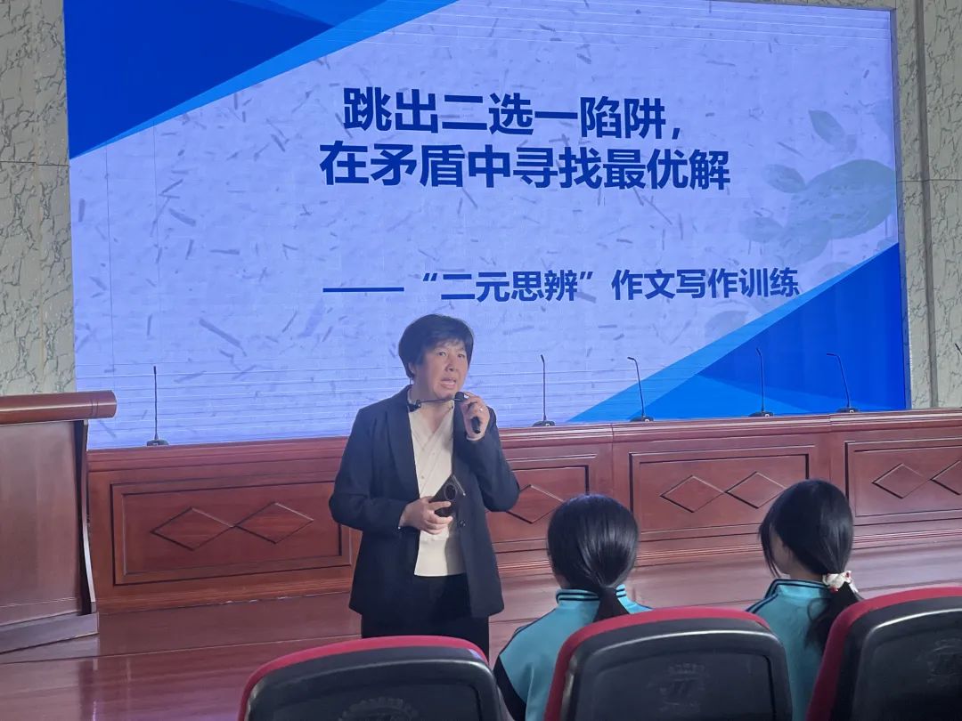 在作文讲座环节,高二年级李珊珊老师带来了题为《审题得法,思辨有方》的写作教学讲座,以王菲的《世界赠予我的》引入 “思辨” 主题,结合近五年高考作文题,从读懂材料、运用逻辑提升作文深度广度、建立素材库和范文集等三个方面展开讲解,并以越剧《我的大观园》和《红楼梦》为例,探讨如何在传统与现代、经典与流行之间寻找思辨点,深化作文主题。