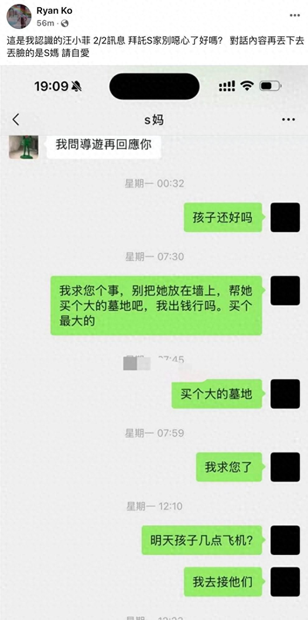 随后,他诚恳地请求S妈,希望能给大S购置一个墓地,语气中带着不容拒绝的坚定和最后的温柔。