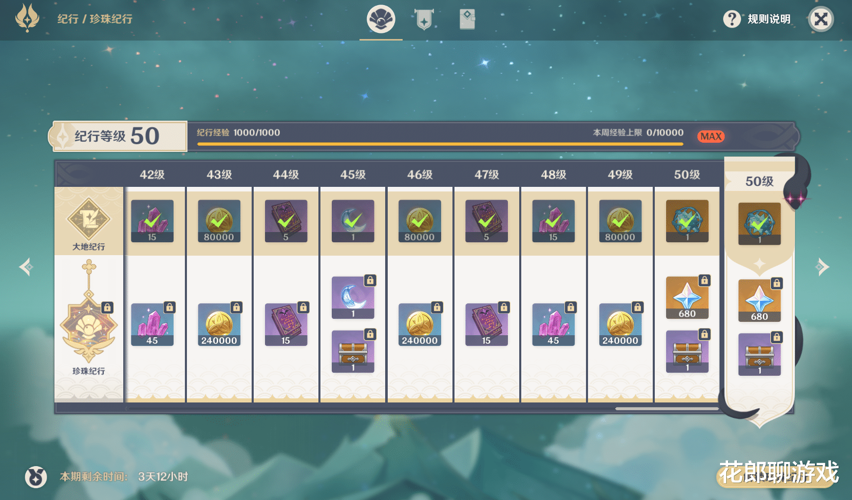 珍珠纪行,也就是我们常说的大月卡,从《原神》开服至今按照版本更新来算,纪行已经是第14期了。可这角色虽然更新了一波又一波,这大月卡里的内容却依旧是开服时的模样,不管是摩拉、经验书、精锻用魔矿、天赋书,还是相遇之缘、纠缠之缘和脆弱树脂,甚至连纪行宝匣里的4星武器都没换过。说到纪行宝匣里的武器,可能很多小伙伴氪大月卡也是为了这个。