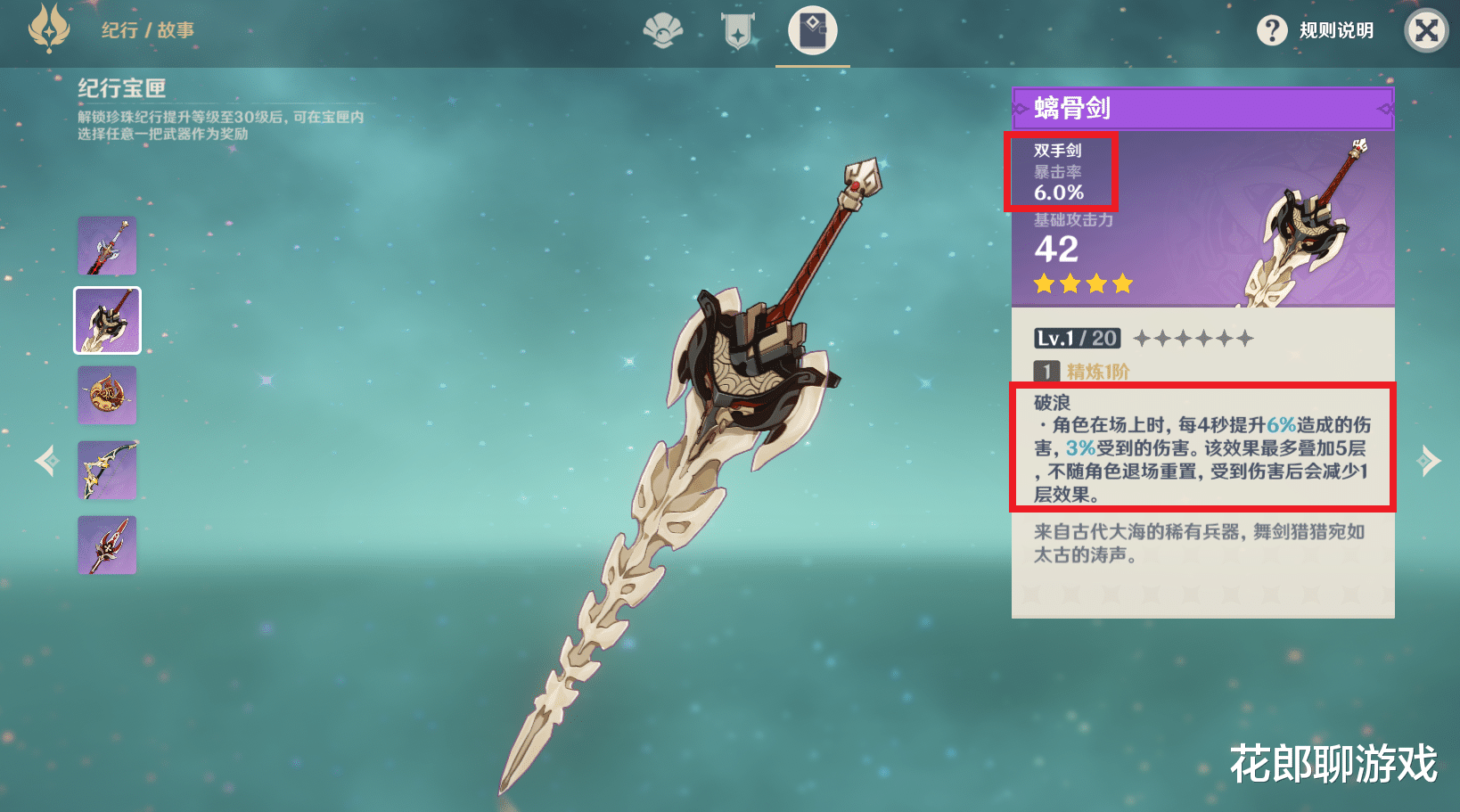 总的来说,纪行武器的泛用性对于老玩家来说已经不高了,而对入坑不久的玩家来说还勉强有一席之地。不过就算你是新手玩家,花郎还是不建议你为了这几件武器换大月卡的,毕竟只要你游戏时间稍微长一点点,怎么都是能从卡池里抽到一些武器的。更何况在没有条件的情况下,我们通过活动和锻造,也是能获一些得不错的4星武器的。当然,如果你是缺摩拉、经验书之类的资源,倒也还是可以氪个大月卡顺手拿个武器。