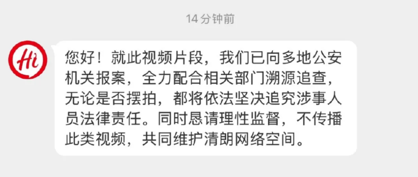 可惜没想到这个视频竟然爆了,迅速快播,传播速度之快,让发布视频的人感到害怕,以为是一场恶作剧,没想到发酵的如此之快,这事情怕是善不了。发布视频的人迅速下架视频并且注销账号,为了就是不让被查到不被追责。