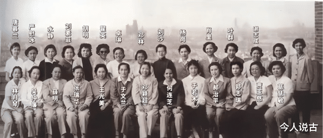 从照片后排站着的左边看起,分别是唐慕兰、严慰冰、水静、刘素菲、胡明、瞿英、卓琳、邓林、刘沙、杨岗、肖里、叶群、谢志成等,最后两位不知道是谁,一共15人。