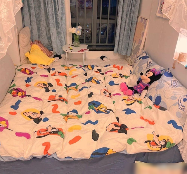 一体的榻榻米柜。从这位姑娘晒出的照片来看,她的卧室布置得非常少女风,简洁舒适又不失美观,还能完全满足日常生活。
