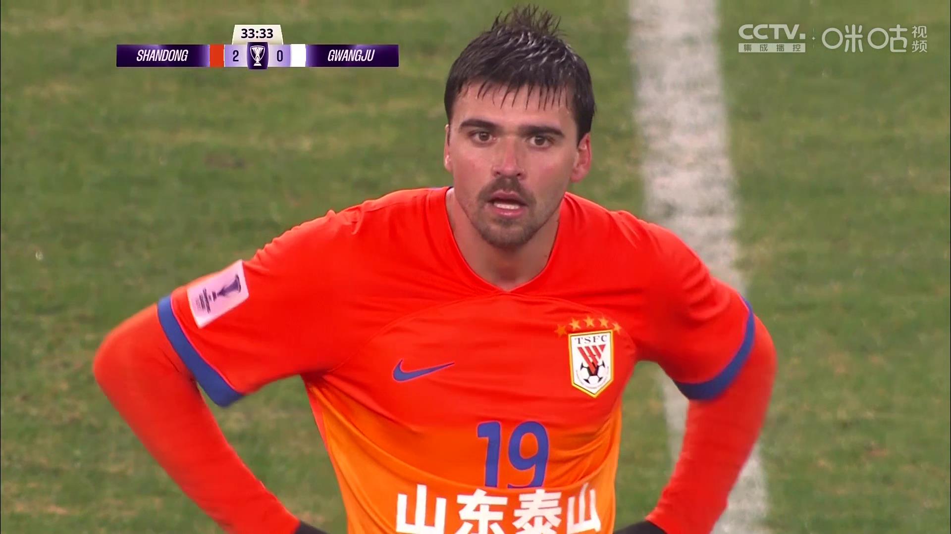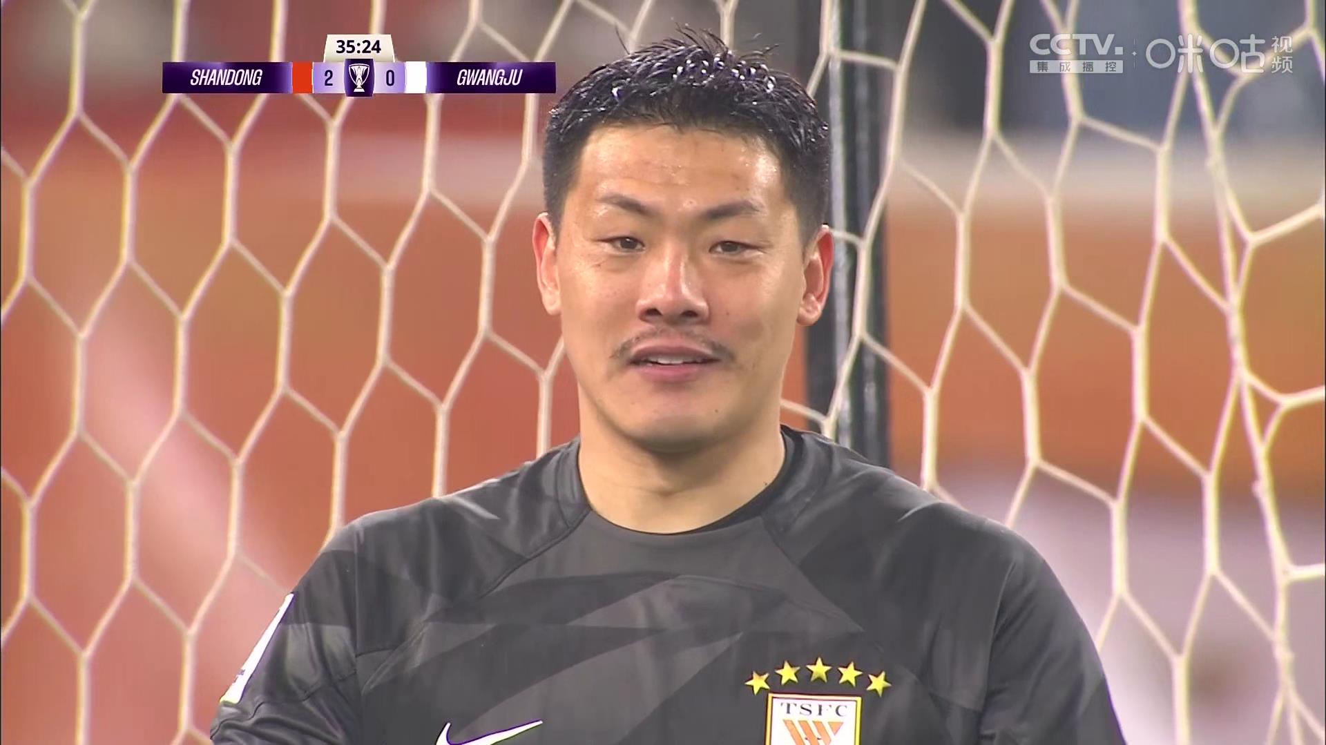 但随后泰山队防线出现问题。第35分钟,光州FC左路反击,李敏基禁区内的打门被挡,皮球高高飞向球门,刘洋禁区线上干扰王大雷扑救,皮球最终入网,泰山队被对手将比分扳为2-1。