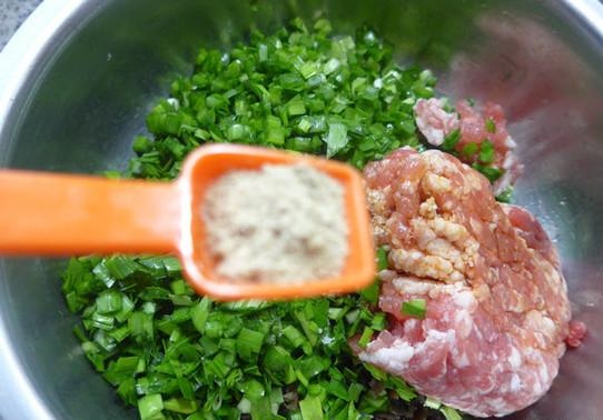 猪肉剁好了之后放到大盆里面,然后先打入一个鸡蛋,接着放入适量的食用盐、胡椒粉和植物油或者蚝油,搅拌均匀。接着一边加凉开水一边用筷子朝着同一方向进行搅拌,一直到肉馅吸收完水分为止。最后就是韭菜,切好的韭菜中加入食用油和胡椒粉,然后和猪肉馅搅拌均匀就大功告成了。