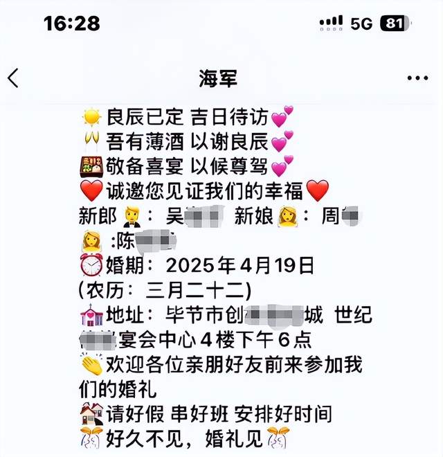 事情是这样的,4月17日那天,一张特殊的婚宴邀请函在网上传开了。照片里一个西装笔挺的男子站在中间,左右各挽着一位穿婚纱的姑娘。最离谱的是,邀请函上还写着"欢迎参加我们的婚礼",这不明摆着告诉别人要办"三人婚礼"吗?