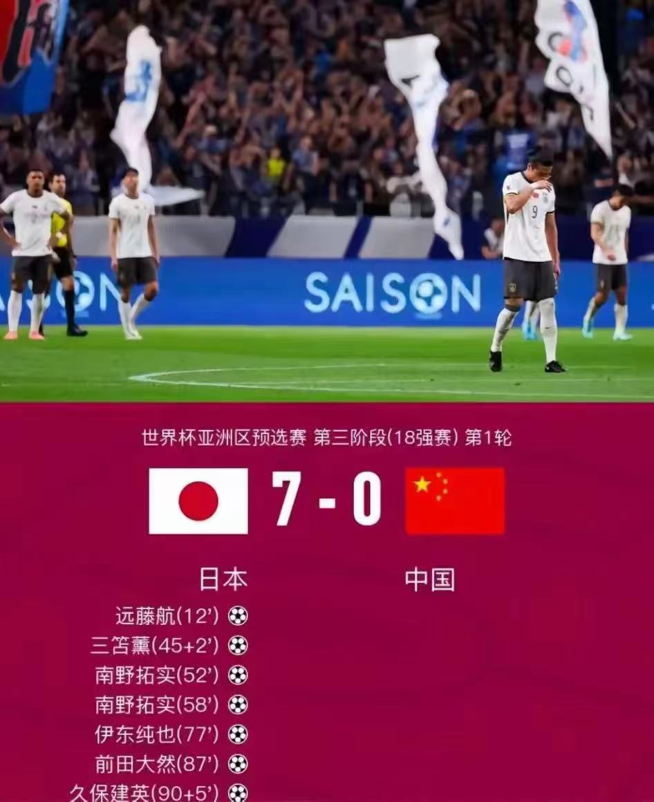 倘若人在死去之后还能够复活,那么国足的比赛必定能让人在生死之间反复徘徊。2024 年 9 月 5 日,世预赛亚洲区 18 强赛拉开帷幕,国足在首场比赛中客场挑战日本,最终以 0:7 的悬殊比分惨败收场,这一结果刷新了国足对阵日本的历史最差战绩。