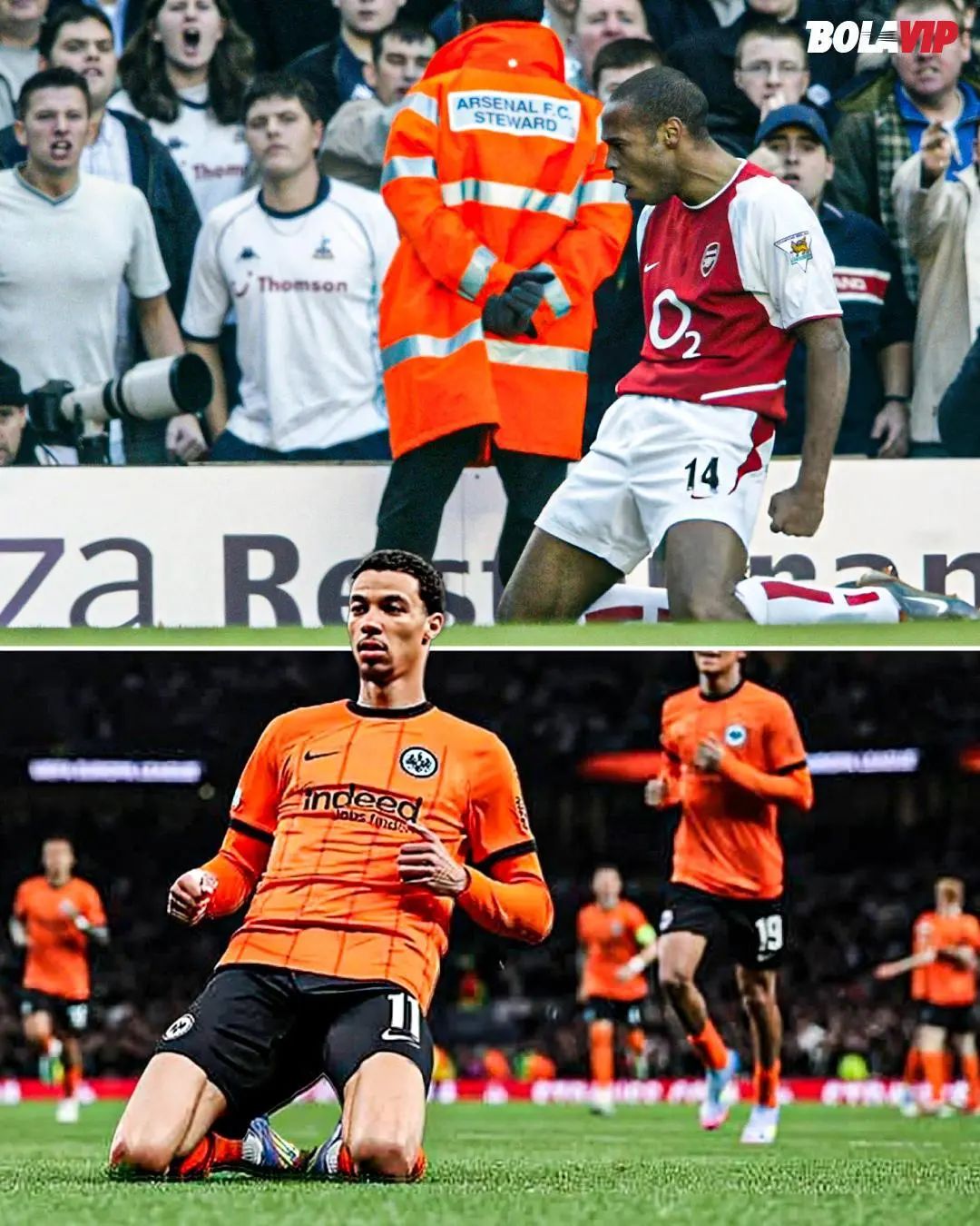 本周五法兰克福客场1-1战平热刺的欧联杯1/4决赛首回合,埃基蒂克推远角破门,进球后埃基蒂克模仿枪王亨利,做出滑跪的经典庆祝动作。