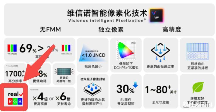 在 ViP 技术加持下, Oled 屏幕除了能实现 Real RGB ,还能实现超过 1700+ 的 ppi( 这水平感觉都能用来给 AR\VR 设备用了 ),提高亮度,延长屏幕寿命等等,基本算是把 Oled 屏幕的通病都给治好了。