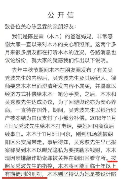 在公开信中,陈昱霖的父母恳求吴秀波能够宽容大度,考虑到过去的情谊,给予女儿一次机会。