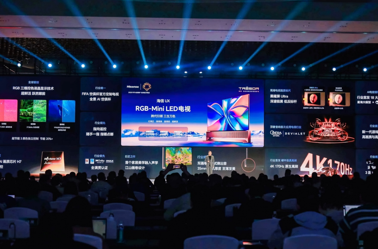 要知道,传统 Mini LED 电视要么用白色背光,要么用蓝色背光,海信的 RGB - Mini LED 电视可不一样,用的是 RGB 红绿蓝三原色背光光源,通俗的讲,就是以前的 OLED 和 Mini LED 只有空间和亮度二维分区控制,海信这个新技术,多了第三维色度维度的控制,从单纯控光变成光色一起控制,液晶显示技术相当于完成了非常重大的改变和升级。