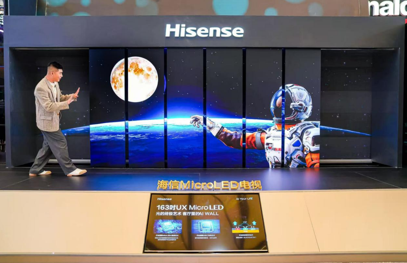 值得一提的是,这次海信还全球首发了 136 和 163 英寸 Micro LED 电视,最大支持定制到 271 英寸,发布会上,海信还带来了 ULED 超画质电视 U8、E8 和 U7 高端系列新品。海信电视今年 ULED 高端系列屏幕全都换成黑曜屏了,黑度提升 4 倍,对比度超高,芯片也都升级成新一代信芯 AI 画质芯片,还都标配帝瓦雷音响。