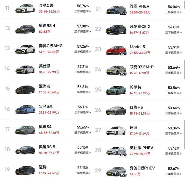 以大众迈腾为例,这款车过去在国内市场颇具人气,然而2025年的保值率排名却仅位于第19位,其保值率为53%。其原因不仅与车型的市场表现有关,更与其销售策略密切相关。大幅度的市场让利虽然在短期内提升了销量,却在消费者心中降低了对该品牌价值的认同感,进而影响到二手市场的保值表现。
