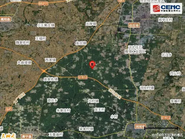 据中国地震台网正式测定,1月12日9时54分在河北沧州市任丘市发生3.4级地震,震源深度13公里,震中位于北纬38.58度,东经115.98度。