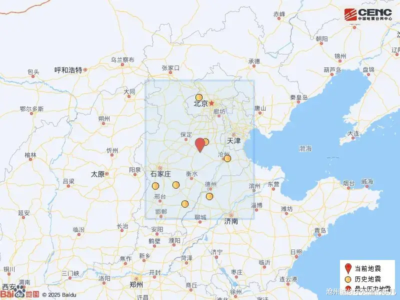 根据中国地震台网速报目录,震中周边200公里内近5年来发生3级以上地震共9次,最大地震是2023年8月6日在山东德州市平原县发生的5.5级地震(距离本次震中161公里),历史地震分布如图。