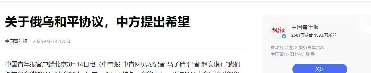 中方始终秉持和平立场,推动国际局势稳定。俄乌战争已持续三年,尽管这场冲突最初由美国通过代理人挑起,但如今美国已表现出撤出意图。
