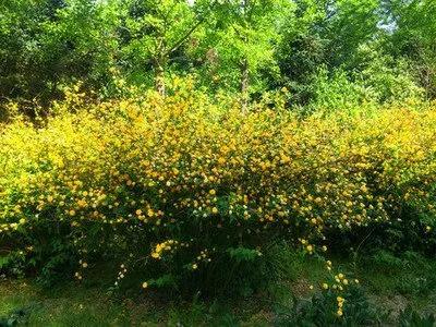 棣棠花是美丽的花木。枝叶翠绿,黄花满株,群植于常绿树丛之前,片植在古木山石之旁,丛植在溪流池畔,配植在疏林草地,尤为雅致,意趣盎然。