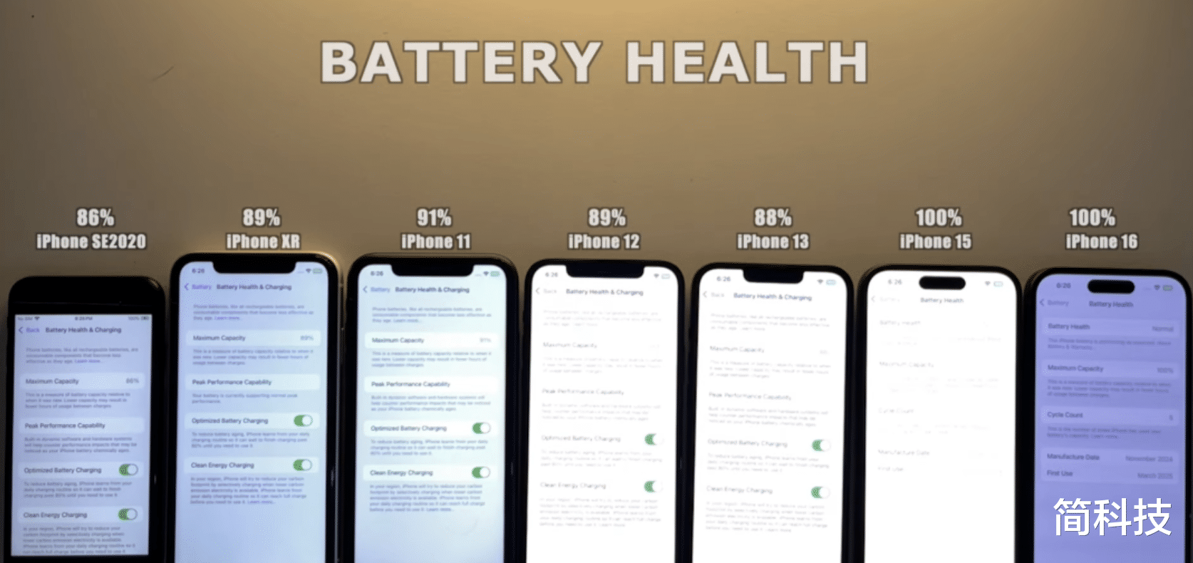 但 iPhone 16 的续航下降了 15 分钟、iPhone 15 续航下降了 30 分钟、iPhone 12 以及 iPhone SE2 续航下降了 18 分钟、另外 iPhone XR 续航下降了 42 分钟。