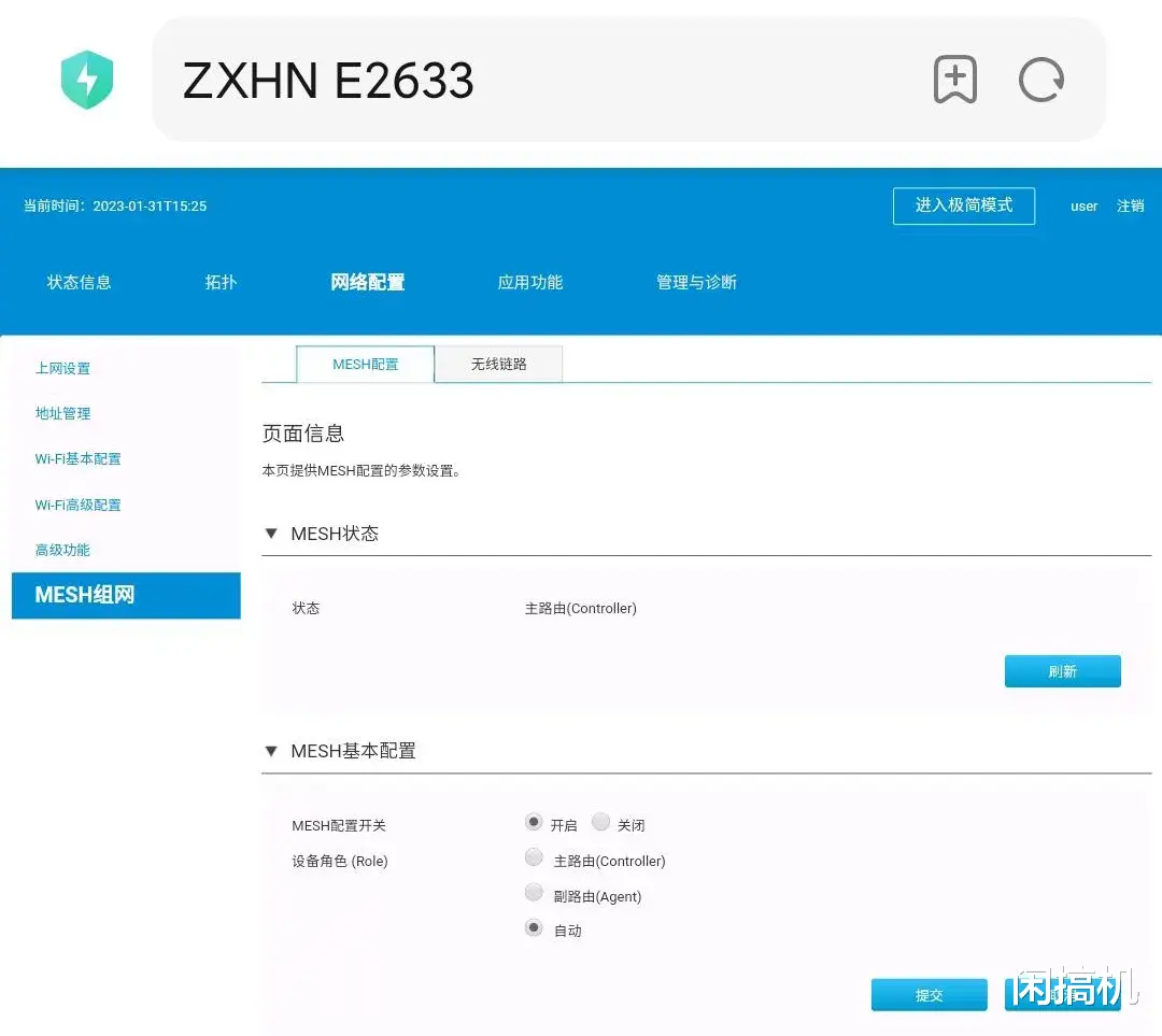 同理,中兴巡天版AX5400 Pro也可以跟移动版E2633组mesh。如果用前者当主路由,还需要把主路由无线链路关闭,副路由的无线链路打开。
