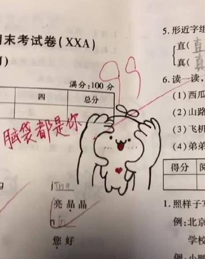 有些女教师很暖心,觉得自己的学生得自己宠着,所以面对学生的试卷,在写评语的时候能图文并茂,堪称全能,要是学生不小心错了一道题,老师不会巴掌奉上,而是默默地来一句“如果你做题再仔细点,老师就不会如此悲伤”。
