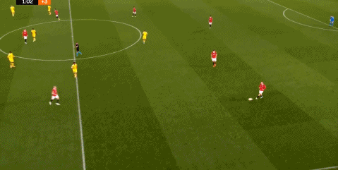 这样一来,曼联面对紧缩防守的蒂拉斯波尔警长就显得办法不多,加之进攻中对空间的观察和耐心不够,于是出现了很多这样的长传打身后的尝试: