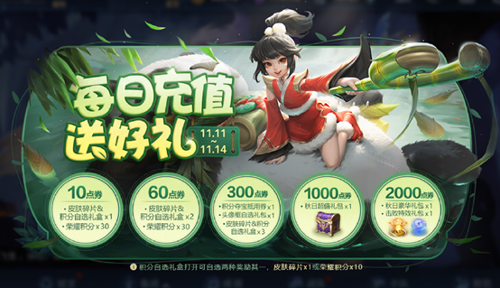 在今天更新的每日充值活动中,大家可能发现了,之前的每日充值都有限时点券送,而这次的活动直接没了。不知道是英雄联盟手游不给力,还是王者策划没诚意,虽然限时点券商场还有20来天,但是限时点券活动从目前看是确定没了。最后希望英雄联盟手游给点力,让我再白嫖一个888史诗吧。