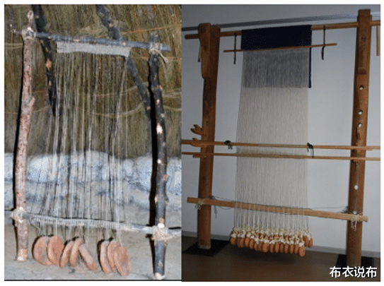 样式: 一根长木棍上悬挂经线,织者用身体或腰部带动经线张开和闭合,用骨针或木梭引纬线。