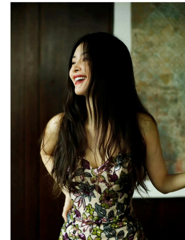 身高仅155cm的王子文,犹如一位穿梭于尘世的袖珍精灵,她的身形虽未拥有鹤立鸡群的挺拔之姿,却巧妙地蕴藏着黄金比例的曼妙韵律,每一寸肌肤都散发着和谐与美感。她的长发宛如夜空中最柔顺的丝缎,轻轻流淌,闪烁着乌黑亮丽的光泽,仿佛是月华下静静铺展的银河,既神秘又诱人。