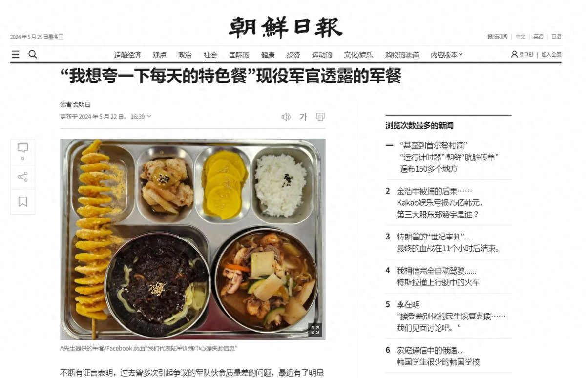这桩新闻在当时也被包括《中央日报》和《朝鲜日报》等韩国右翼媒体给大肆宣传过,不过最后在韩国舆论界反倒集聚了近乎一面倒的差评。很多韩国网民普遍觉得韩军这套剧本编得实在太假了,这伙食标准看上去就不像是韩国人平时能吃得到/吃得起的东西,更别说长期以来连平均餐费还不如中小学生的韩国军人了——而且还是韩国士兵,想想都觉得扯淡。