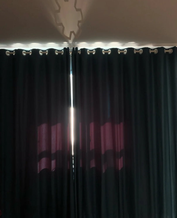 后来没办法只能用发夹夹着,不让光从窗帘缝隙中透过,影响睡眠环境,而且虽然下面窗帘夹着了,没有光线了,但是上面却还是会有一点点的光,真的是非常的烦人。