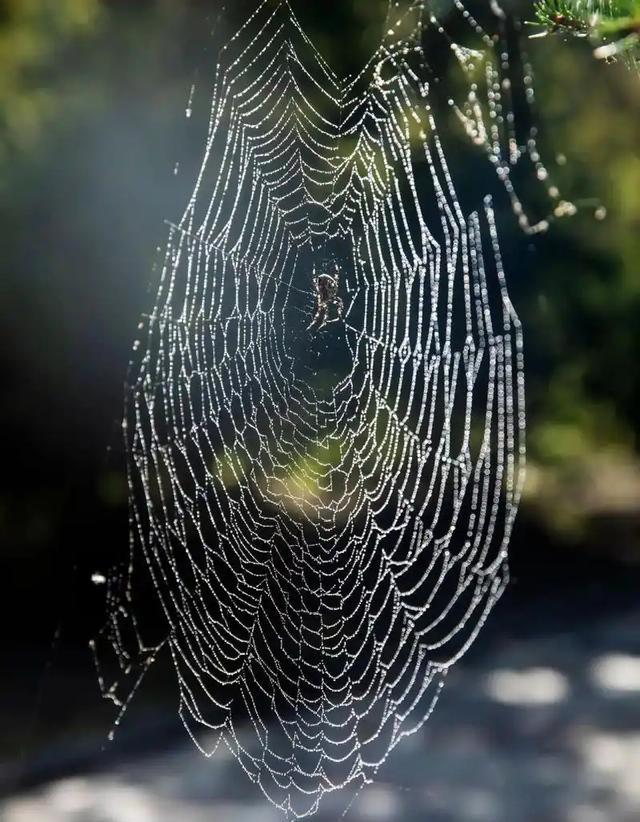 还有一种蛛丝是不粘的,它们构成了蜘蛛在网上的 “安全通道”。这些非粘性丝线在整个蜘蛛网中就像是一条条预设好的轨道,蜘蛛在网上活动时,会巧妙地沿着这些通道行走,从而巧妙地避开那些粘性区域,不会被自己设下的陷阱困住。在蜘蛛捕猎的过程中,这种粘性与非粘性区域的巧妙分布就显得尤为重要,这充分体现了它们高超的捕食技巧,显然是经过了长期的进化和精心的策划。
