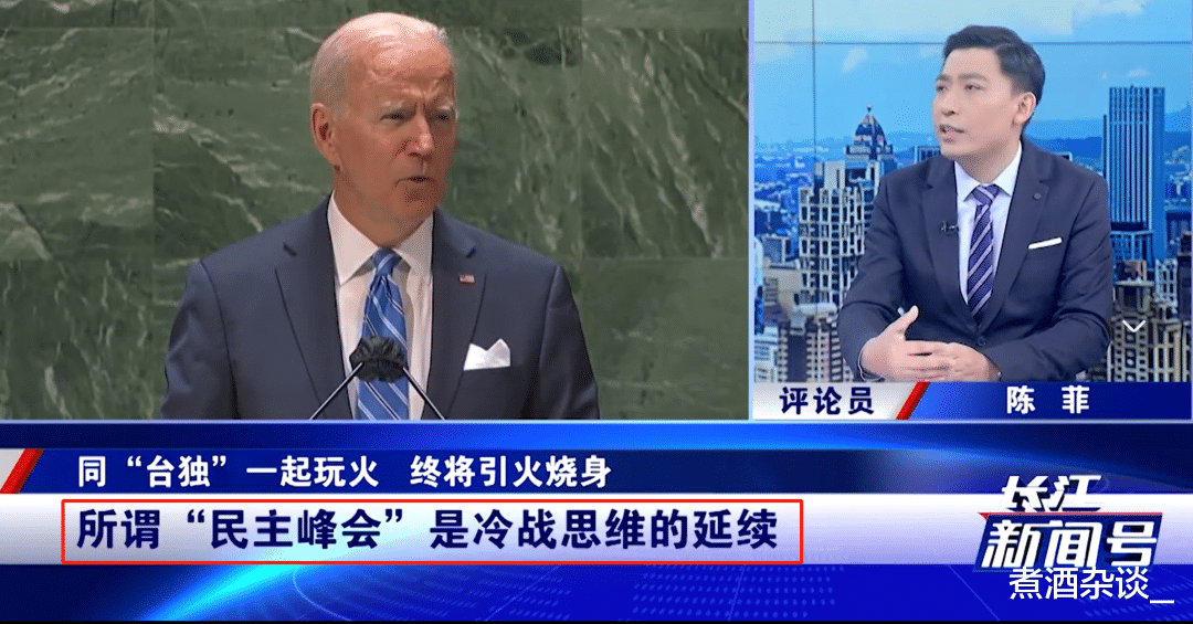 再如美国主持召开的所谓“全球民主峰会”,同样是有几十个国家参加,中国也同样没有参加。然后,美国一看我们不参加,就邀请台湾当局参加,故意恶心我们。