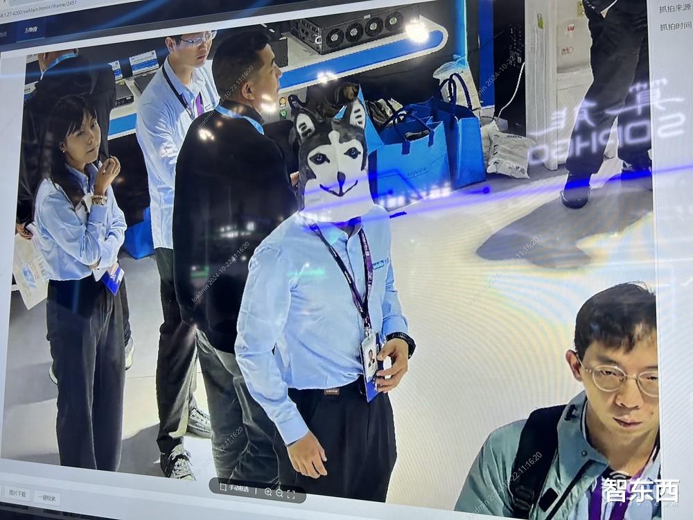 在宇视中心区域展区,一块大屏幕前,围满了视频数据服务系统“万物搜”的体验者。他们只需要输入文字描述,就能从现场实时视频内容中,快速检索出贴近意图的结果。比如搜索“拉行李箱的人”,“万物搜”就会立刻识别并输出对应的结果。