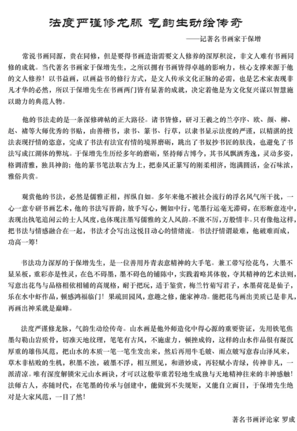 于保增——中国艺术大家