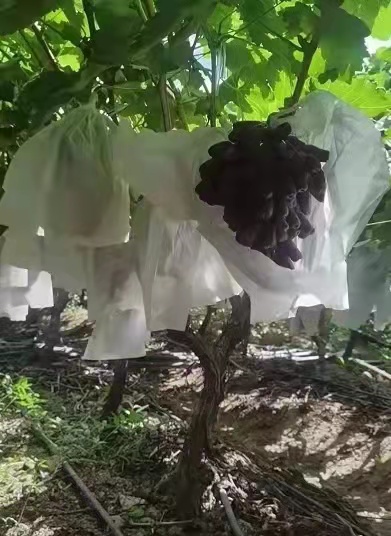 幸好,途中遇到一位自称“阿兵”的年轻人,开车把记者引到了宾川县华侨农场三队一处紫玉天珠葡萄果园内、看到刚采摘下来、白纸袋包着的“紫玉天珠”时,记者竟然有些不敢相信自已的眼晴,这就是让兴宏达农副产品专业合作社名列“云南水果百强榜”的紫玉天珠、苍洱金珠葡萄吗?