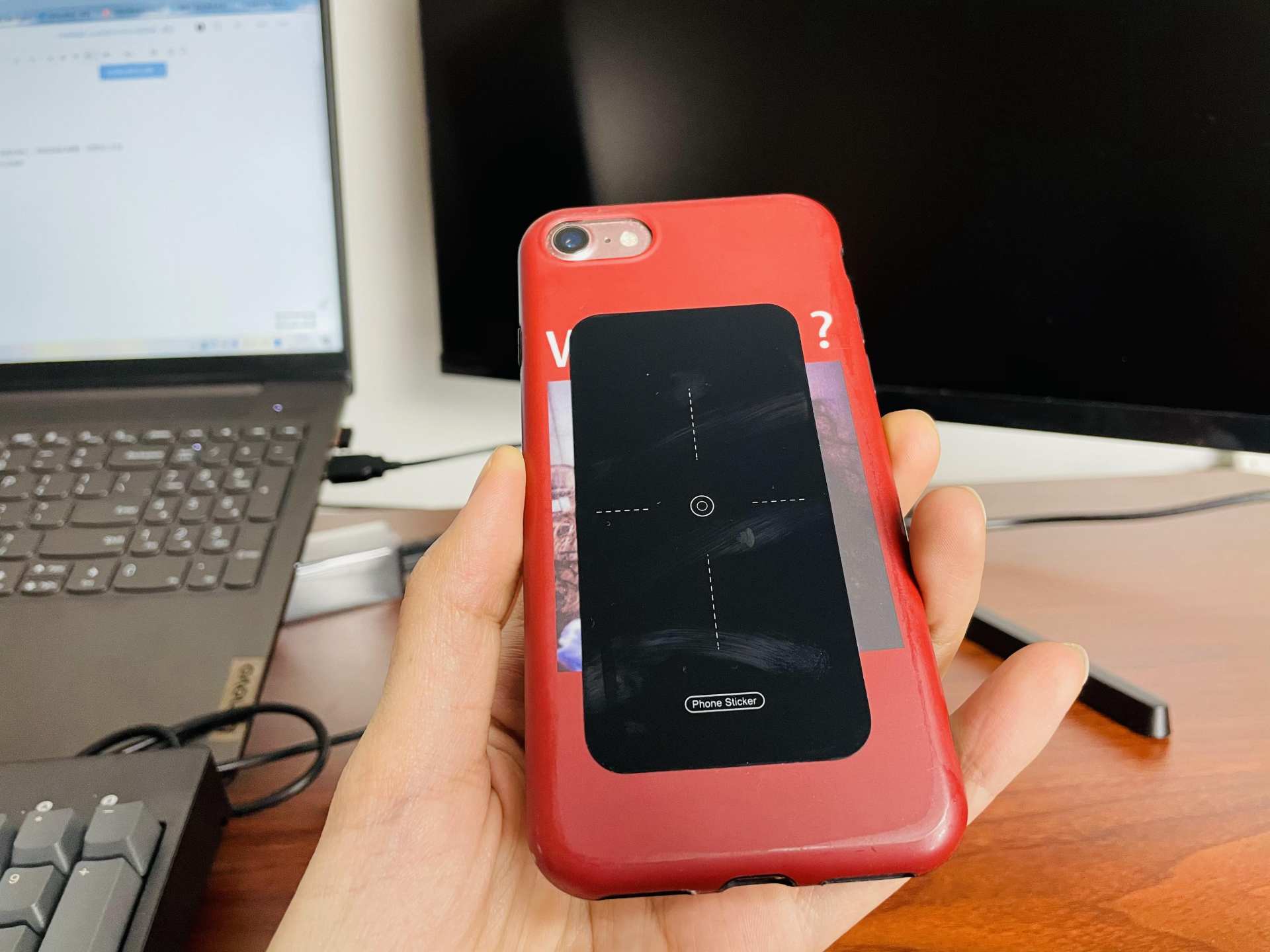 ▼当然它的吸附有时还是需要借助另外一个东西,毕竟不是每一种后盖的表面都是光滑的,特别是对于磨砂的后盖,它的吸附就需要借助辅助纳米手机背贴,有了它不光滑的手机后壳也能被iWALK变色龙牢牢吸附