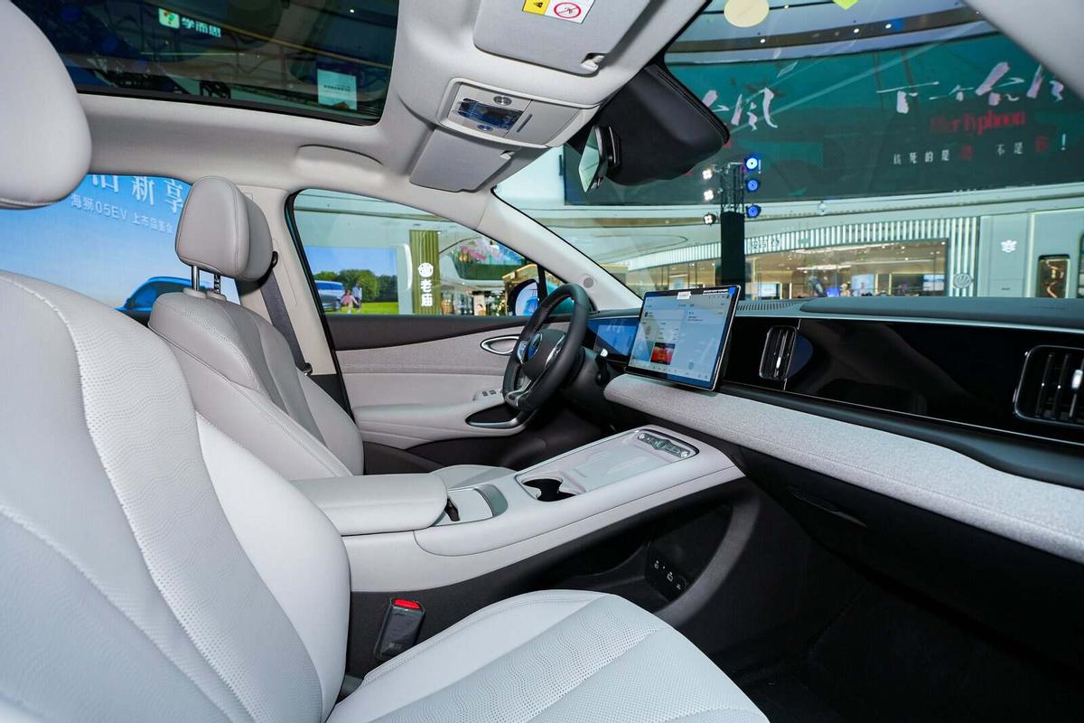 内饰延续了海洋网的美学设计,对称式布局,有海盐灰和星空黑两种内饰颜色,好看好用!这次海狮05EV搭载了1.8米超广角全景天幕,双层隔热灰玻璃,同时还配备电动遮阳帘,彻底解决防晒问题。