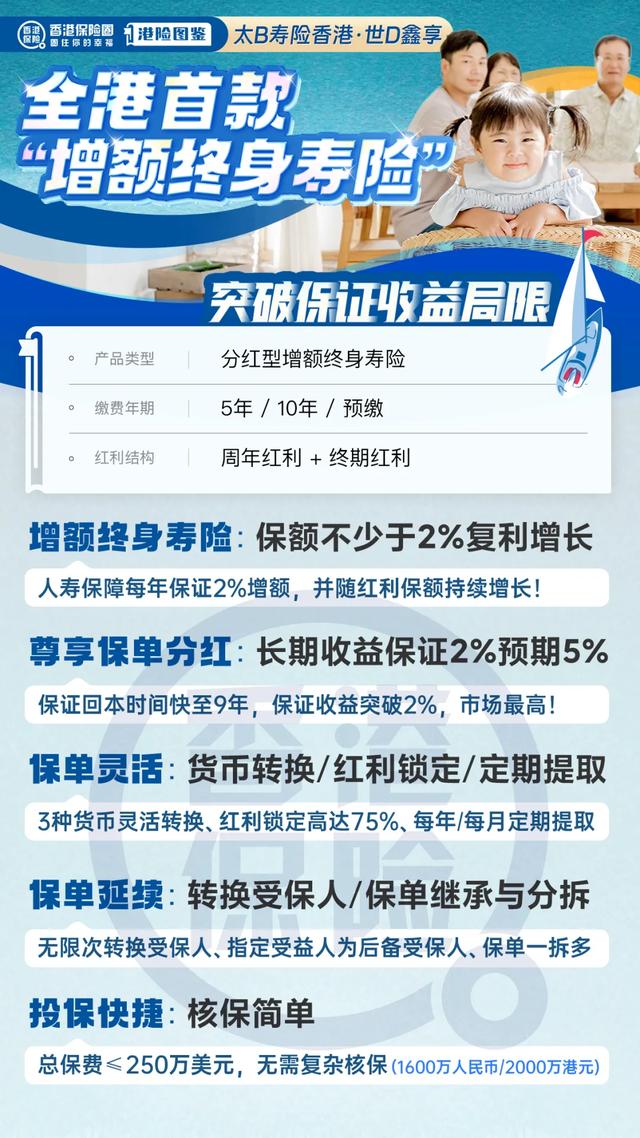 太保寿险香港的「世代鑫享」其产品类别归属于增额终身寿险,在香港是没有相同类别产品的。这主要是依靠太保中资的品牌属性,把国内的成功经验复刻到香港保险市场。2%的固定增长相较于传统分红险不到 1%的增长而言,可是领先许多的。