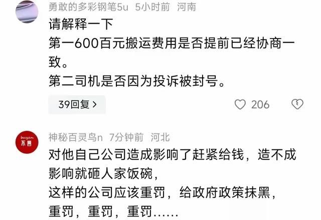 网友认为,这件事目前有两个焦点,第一点,600元搬运费。当时事件双方是否已经谈妥?第二点,货拉拉司机是否因为投诉而封号?